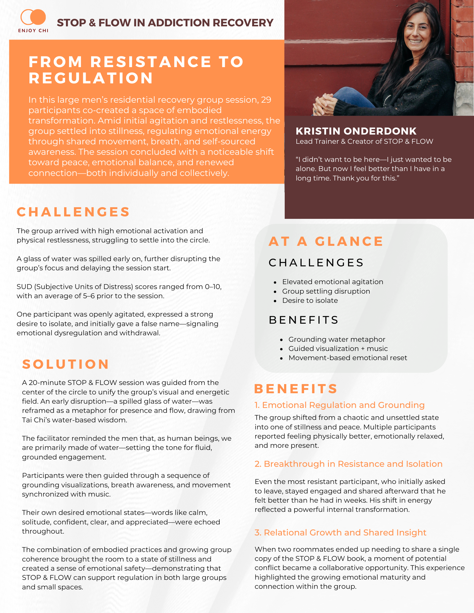 Discover how 29 men shifted from agitation to grounded calm, releasing emotional tension and cultivating group harmony through Enjoy Chi’s STOP & FLOW mindfulness practices. Begin your path to inner balance today.